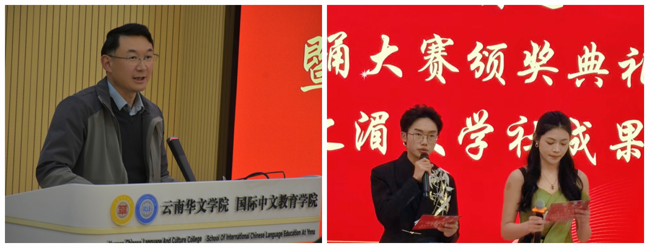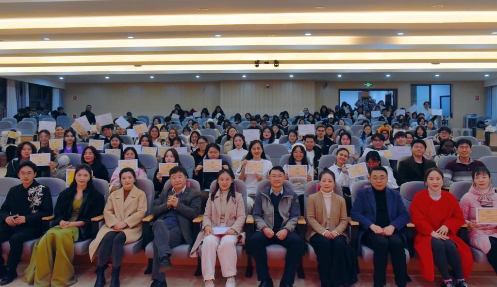 12月16日,云南华文学院(国际中文教育学院)水之湄文学社成果展演暨“十一月的诗迹”诗歌朗诵大赛颁奖典礼在华文楼104报告厅成功举办。学院党委书记陈永荣、常务副院长杨吉华、党委副书记罗仁波、副院长杜忠锋、副院长黄启庆、水之湄文学社指导教师姚月燕以及两百余名中外师生参与本次活动。